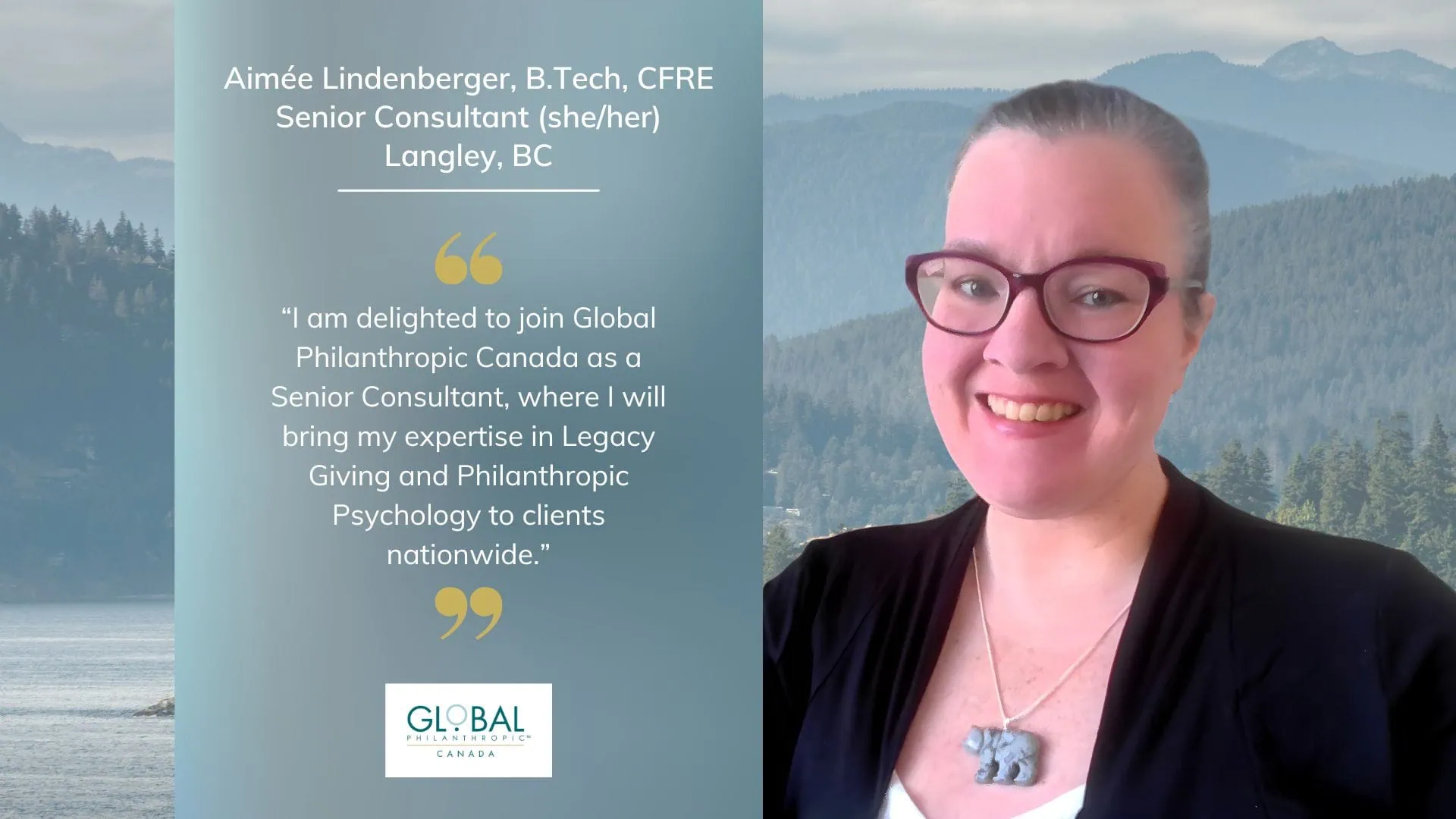 Global’s Vice President Pacific, Jeff Sodowsky adds, “With a vast array of skillsets and experience contributing to the sector, Global Philanthropic Canada is fortunate to have Aimée joining its team. While those of us in British Columbia are familiar with her and her work, I am pleased that others across Canada will increasingly benefit from what Aimée offers.”