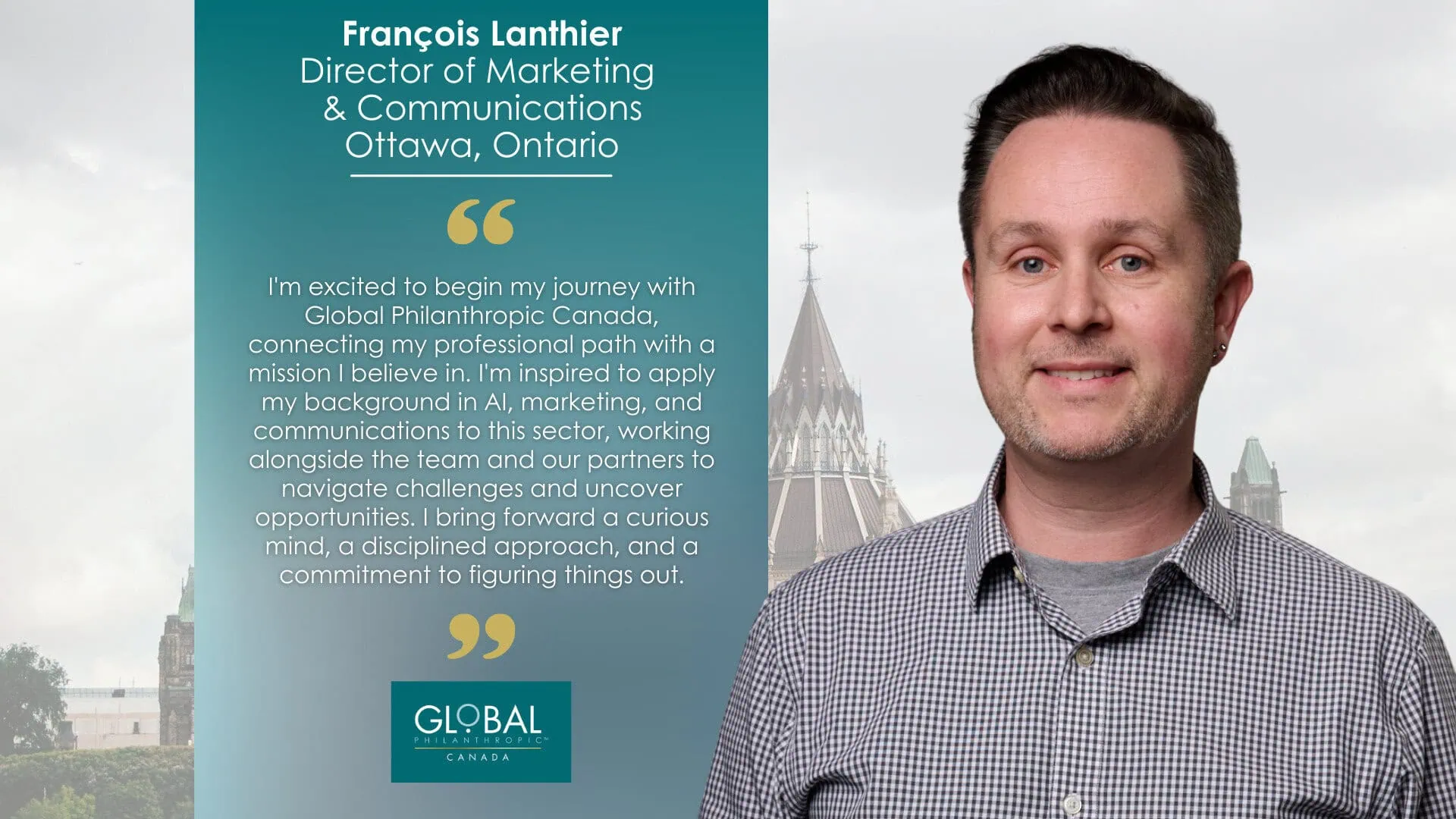 Global Philanthropic Canada is excited to announce a fantastic new addition to our team! Please join us in welcoming François Lanthier, our new Director of Marketing & Communications. François officially jumped on board on January 26, 2026, and will be connecting with us all from his base in Ottawa.